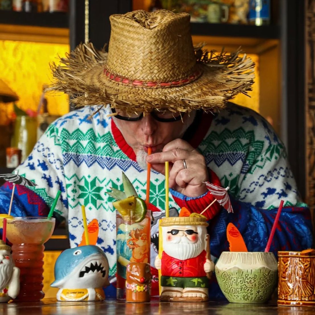 Sippin’ Santa is the tropical Christmas pop-up that takes over bars across the country every year. Instead of pine trees and sleigh bells, think surfboards, island lights, tiki mugs shaped like Santa, and cocktails that taste like a holiday beach vacation. Each city puts its own spin on the theme, but the vibe remains the same: Santa went to the tropics and never came back. See if Sippin’ Santa is in your city here.