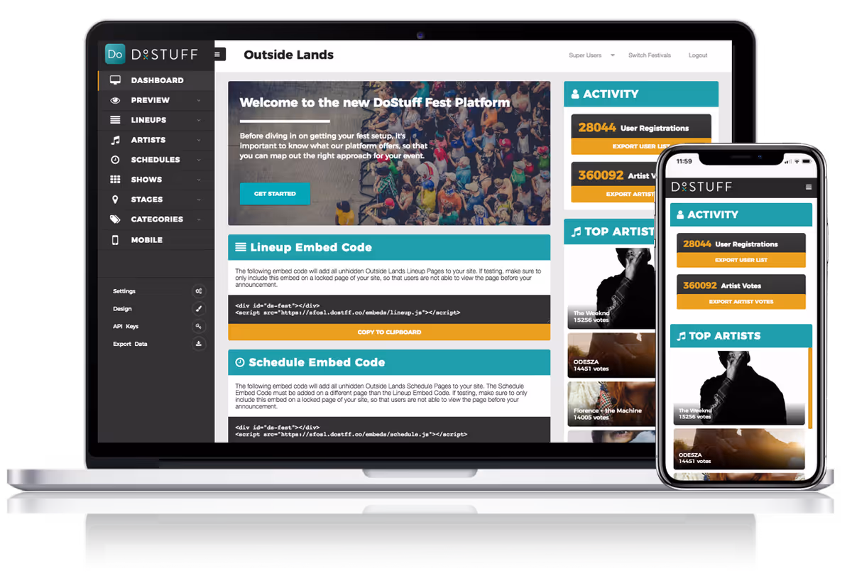 "The DoStuff platform provides our fans with the same sense of music discovery they’d feel at our events, from the moment they visit our websites. Being able to easily build (and quickly update) robust artist pages is a big win for our team, and allowing fans to customize their schedule is a festival must-have!"