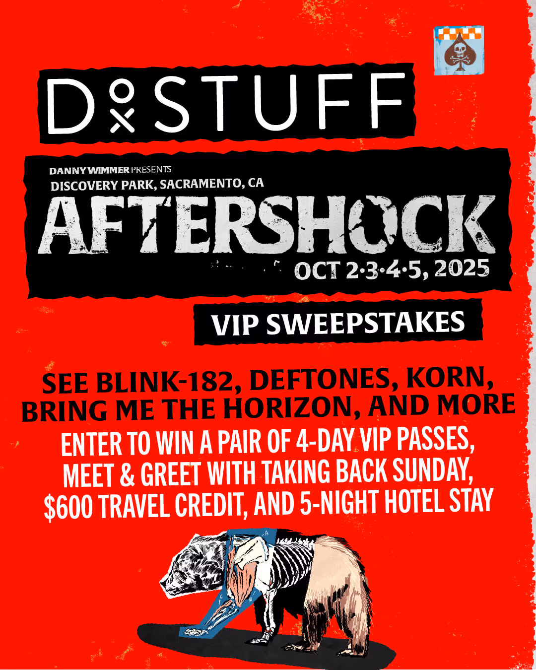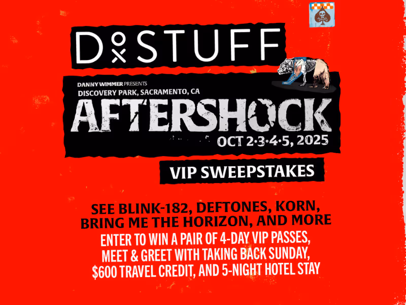 Experience the West Coast's largest rock and metal takeover! Enter to win 2 VIP passes to Aftershock 2025, hotel accommodations, $600 toward travel expenses, and an exclusive meet & greet with Taking Back Sunday! Don’t miss Blink-182, Deftones, Korn, and Bring Me The Horizon headlining four days of musical mayhem in Sacramento this October.