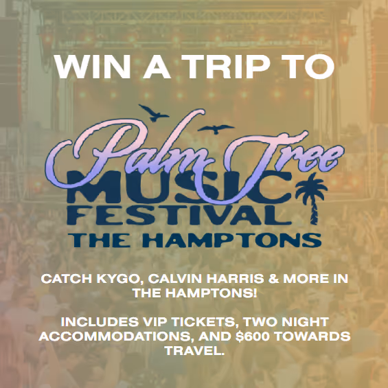 Catch Kygo, Calvin Harris & more in the Hamptons! Includes VIP tickets, two night accommodations, and $600 towards travel.