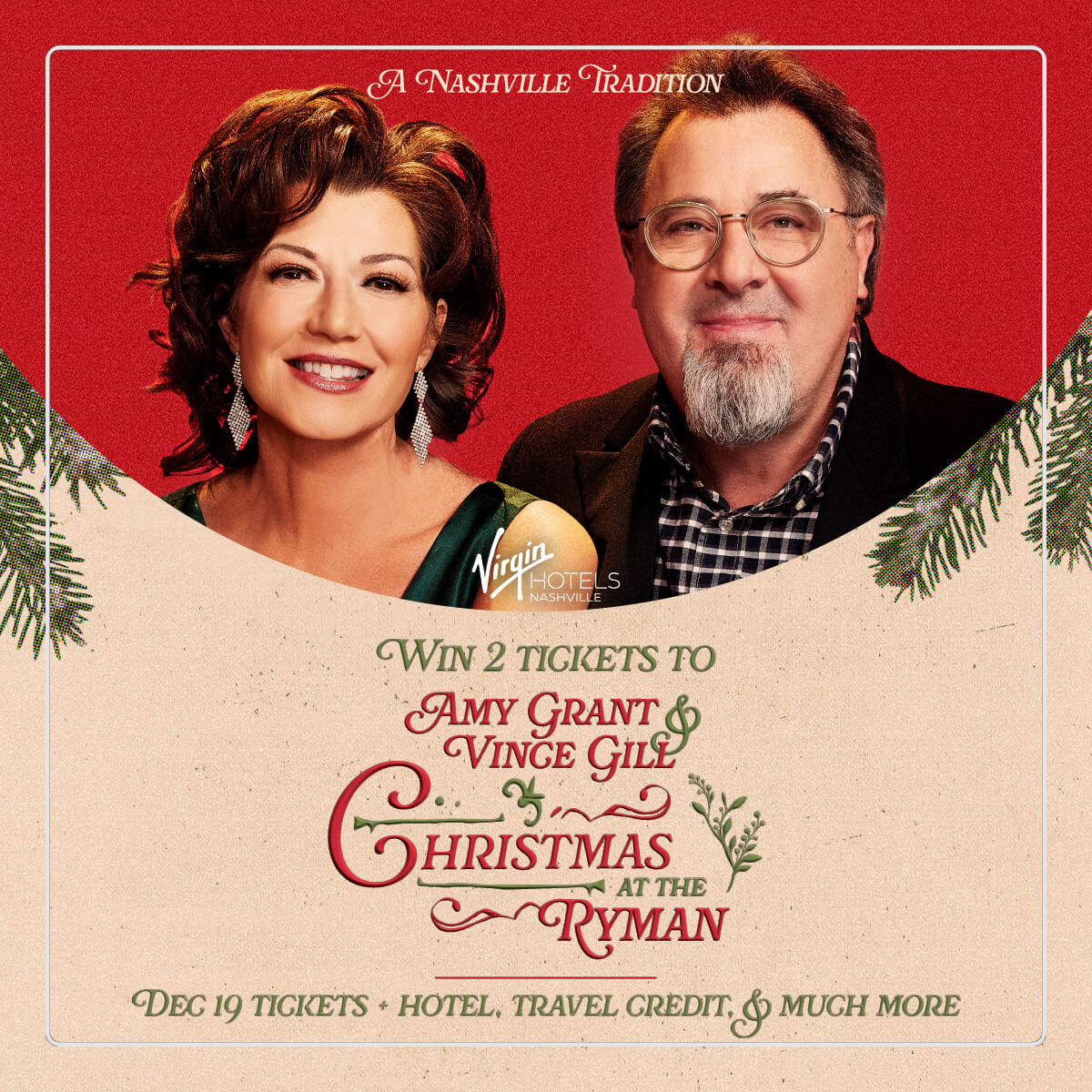 Enter for a chance to experience Nashville during its most celebrated seasonal residency. We’re giving away two tickets to Amy Grant and Vince Gill’s sold out Christmas at the Ryman performance on December 19, plus hotel accommodations and travel credit. Their fifteenth annual run brings holiday standards to one of music’s most historic stages. The prize also includes a When I Think Of Christmas merch bundle with vinyl, apparel, and festive keepsakes.
